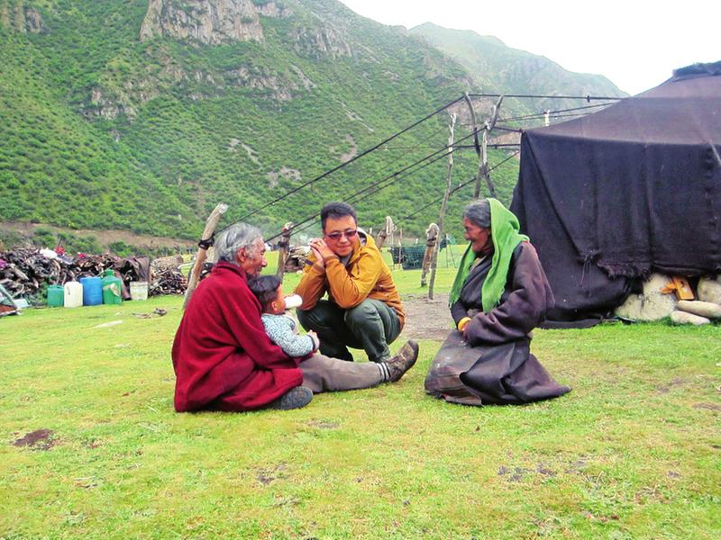 旦增頓珠(中)走進藏民間了解群眾的生產生活狀況