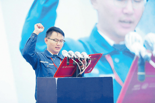 魏哲在中國鐵建技能大賽開幕式上代表參賽選手宣誓(鄭慶航 攝)