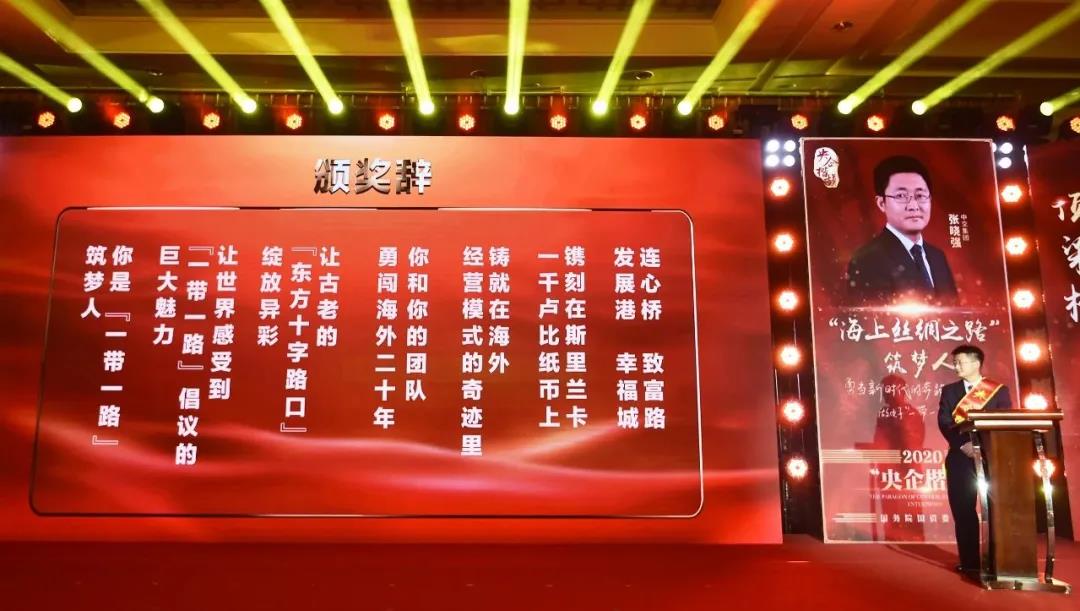 “你(ni)和你(ni)的團隊勇闖海外20年,讓(rang)古老的‘東(dong)方十字路(lu)口’綻(zhan)放(fang)異彩,讓(rang)世界感受到‘一(yi)帶一(yi)路(lu)’倡(chang)議的巨大魅力。你(ni)是‘一(yi)帶一(yi)路(lu)’筑夢人(ren)(ren)!”在(zai)國(guo)務(wu)院國(guo)資委舉行的第五屆“央企楷模”發布會上,中交集團所(suo)屬中國(guo)港灣副總(zong)經理,斯里蘭卡區域公司總(zong)經理、黨委副書記張曉強站在(zai)臺上默(mo)默(mo)聽著主(zhu)持(chi)人(ren)(ren)宣(xuan)讀頒獎(jiang)辭,心潮澎湃。