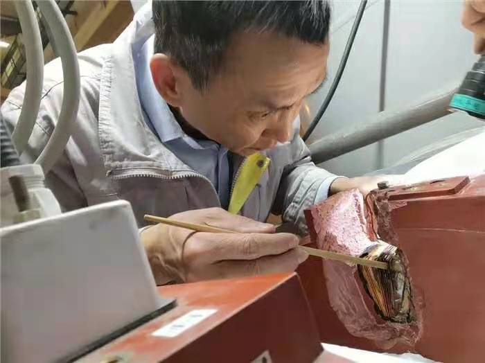 憑借著多年維(wei)修經驗,胡(hu)浙麟(lin)敏銳地判(pan)斷出受損部(bu)位存在(zai)(zai)在(zai)(zai)線修復(fu)的可能性。這活,有(you)戲(xi)!接下來(lai)就(jiu)是緊張的修復(fu)過程(cheng),從內部(bu)線圈(quan)的壓接和焊接,再到外(wai)部(bu)的澆注和修整(zheng),兩天時間,原(yuan)本看起來(lai)近乎“報廢”的電(dian)流互感器又“重(zhong)生”了,并(bing)且維(wei)修后設備一次送電(dian)成功。