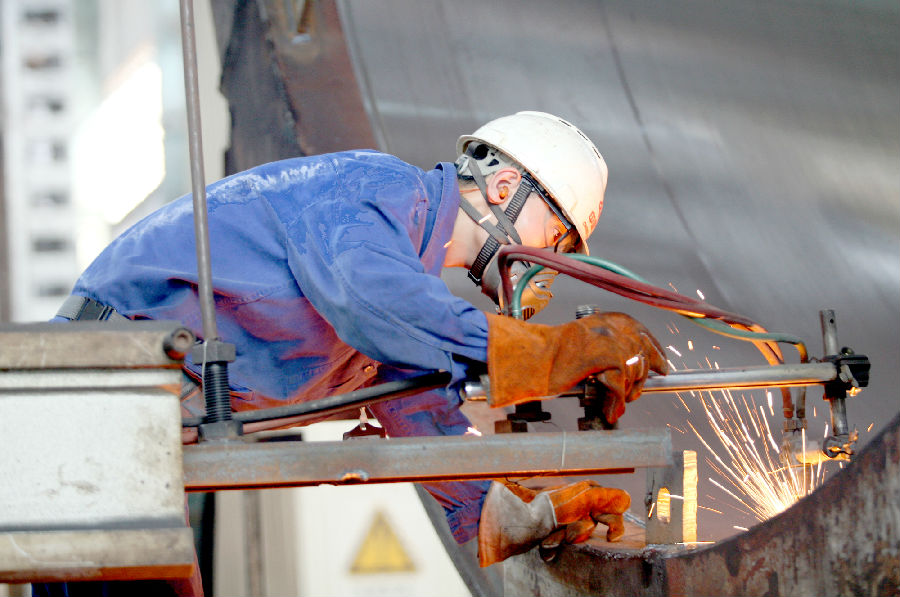核電石化事業部鉚工正在對遼陽項目筒節進行切割加工