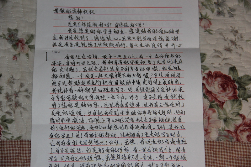 高鋒(feng)曾(ceng)資(zi)助(zhu)過的貧困(kun)學生給他寫信表達感激之情。