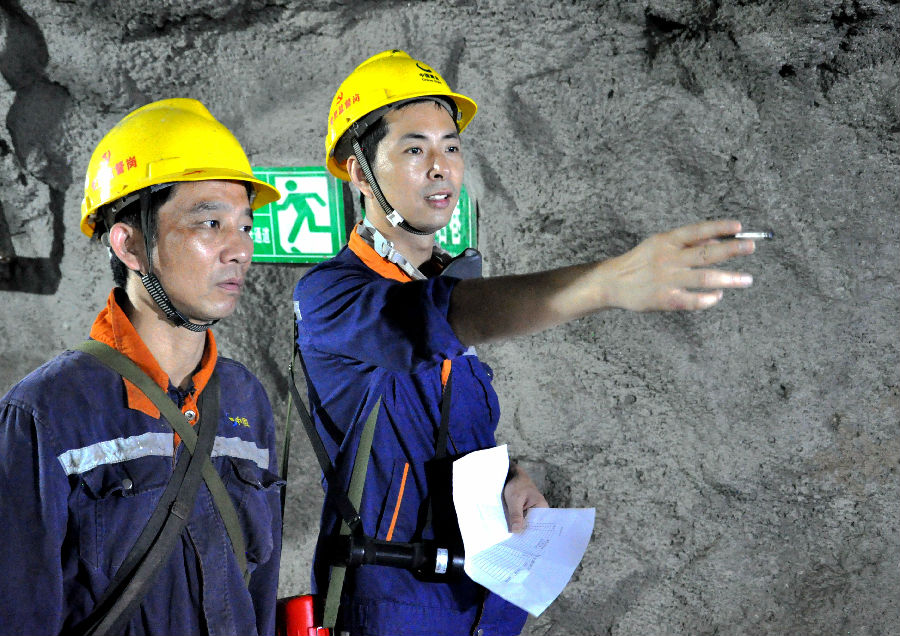 “志兵,-559水(shui)平(ping)2線的頂板(ban)浮(fu)石較多(duo),我們一(yi)起去(qu)現場(chang)叮囑他們,做好安全確認(ren)。”7月2日早上8點半,在中國黃金湖(hu)北(bei)三(san)鑫金銅股(gu)份有限(xian)公司井下-559米(mi)水(shui)平(ping),采(cai)礦車間(jian)機(ji)械化中段副工(gong)段長嚴濤(tao)帶(dai)著當班值班長胡志兵,來到T721采(cai)場(chang)檢查現場(chang)作業安全。該處(chu)由于頂板(ban)風化嚴重(zhong),盡管嚴濤(tao)已在班前會再(zai)三(san)強調,但他還是(shi)不放心(xin),要(yao)再(zai)叮囑一(yi)下作業工(gong)人。