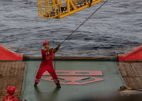 拖輪上(shang)的(de)甲板(ban)工(gong)確(que)認(ren)好了(le)(le)吊(diao)籃(lan)上(shang)的(de)人(ren)員安(an)全,對講(jiang)機里一(yi)聲“起鉤”,四周站滿(man)(man)了(le)(le)員工(gong)的(de)最后(hou)一(yi)趟吊(diao)籃(lan)向著(zhu)潿洲6-8平臺(tai)緩緩升空。不(bu)一(yi)會兒,不(bu)大的(de)頂層平臺(tai)就已經被(bei)人(ren)員和(he)配件占(zhan)滿(man)(man)。20多(duo)人(ren),負責四塊不(bu)同(tong)的(de)業(ye)務,新增儲物間、海管(guan)立管(guan)管(guan)卡(ka)安(an)裝、閉排泵檢修、消(xiao)防軟管(guan)測試和(he)保養。從頂層甲板(ban)到(dao)貼近海面的(de)靠船,從關鍵設備(bei)到(dao)消(xiao)防設施,30多(duo)攝氏度的(de)高溫里,一(yi)項項工(gong)作(zuo)在有條不(bu)紊地開(kai)展。