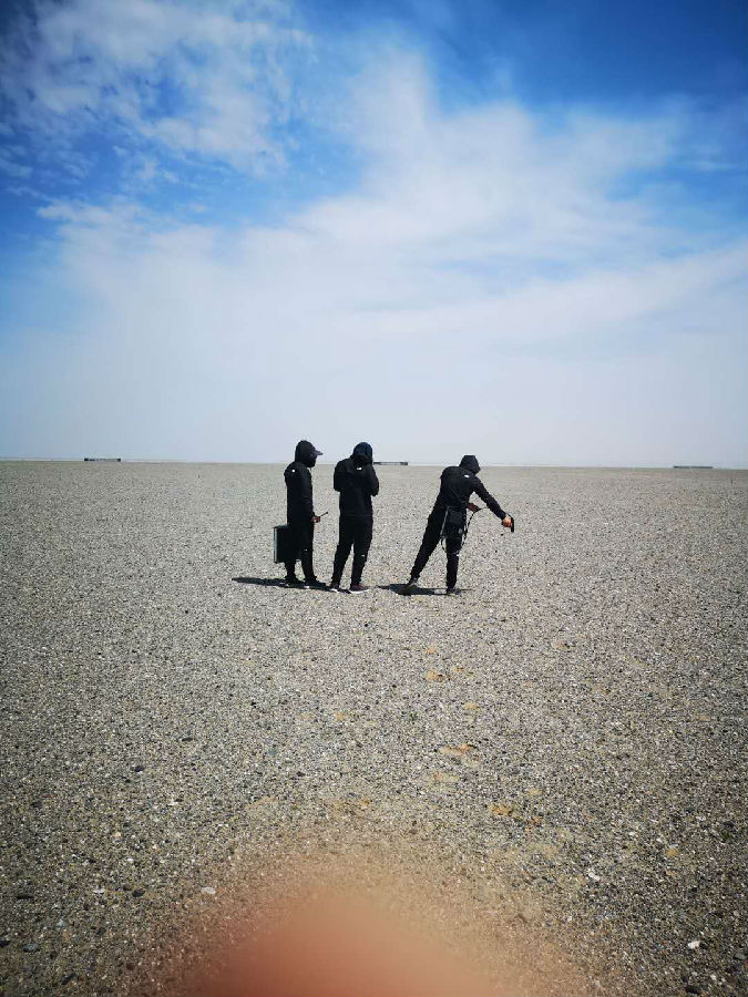 9月(yue)的荒涼戈壁,正午地面溫度近50攝(she)氏度,一(yi)層薄云遮住了太(tai)陽。副隊長張學文博士不斷(duan)仰頭(tou)望著(zhu)天空,“云散了一(yi)些,半小(xiao)時后估計能達到天氣要求,出發(fa)!”三人小(xiao)分隊全副武裝,身著(zhu)黑色長衣長褲(避(bi)免(mian)反光影響數(shu)值準確性)走進測試區。
