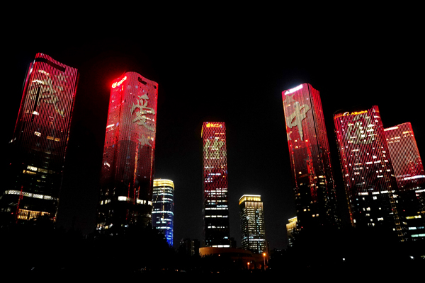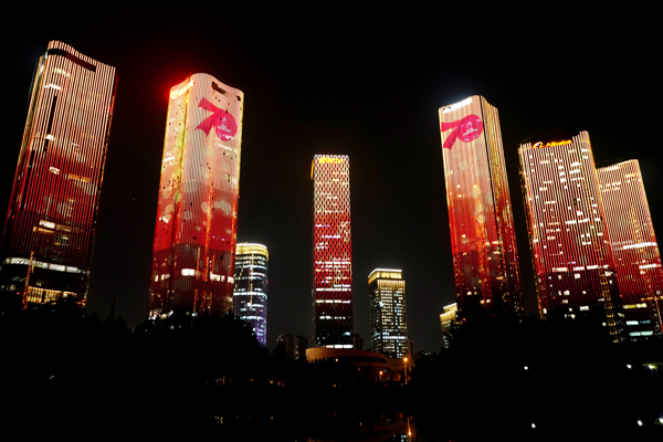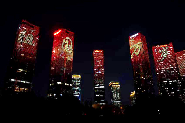 近日,在(zai)北京“國門商務區(qu)”大(da)望京CBD建(jian)筑群(qun),一(yi)場(chang)美(mei)輪美(mei)奐的燈光(guang)秀正在(zai)上(shang)演,點亮了整片夜空。千人(ren)駐足、萬(wan)人(ren)直播(bo)的大(da)望京燈光(guang)秀用其(qi)獨特的方式慶(qing)祝(zhu)新中國成(cheng)立(li)70周年(nian)。