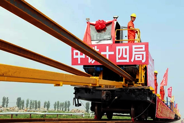 在(zai)沿(yan)線(xian)(xian)百姓的全力支持(chi)下,中鐵(tie)十四(si)局五公司進場38天(tian)便完成(cheng)(cheng)了(le)全線(xian)(xian)首(shou)片(pian)箱(xiang)梁(liang)(liang)的預制(zhi),98天(tian)梁(liang)(liang)場認證(zheng)完畢,118天(tian)全線(xian)(xian)首(shou)片(pian)箱(xiang)梁(liang)(liang)成(cheng)(cheng)功架設(she),開工一年半實現鋪軌,不(bu)斷刷新著高(gao)鐵(tie)建(jian)設(she)紀錄(lu)。
