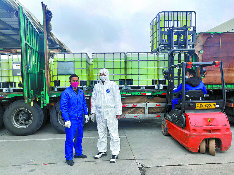 現在(zai)是2月6日(ri)日(ri)暮時(shi)分。劉建召剛(gang)從武漢返回天津,便到中國海油(you)臨時(shi)生(sheng)產84消毒液的(de)(de)主(zhu)陣(zhen)地——中國海油(you)所屬單(dan)位天津正達科技有限責任公司提貨。顧不上(shang)吃口(kou)飯的(de)(de)他,又要出發了。