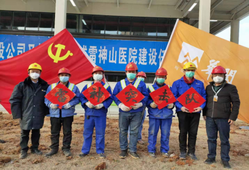 隨即,武漢華潤燃氣雷神山醫院項目建設指揮部、雷神山項目臨時黨支部成立,工程管理中心立即組織開展人員、設備及材料籌集工作,通過反復溝通、積極動員,施工班組人員熱情高漲,紛紛請愿要求投入戰斗。最終,由7名黨員和骨干員工共36人組成“雷神突擊隊”,再加上50名后勤保障人員,共86人參與項目建設及后期運行保障。