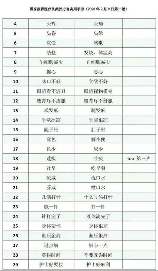 帶給我(wo)(wo)(wo)(wo)感動的(de)(de)還有武(wu)漢(han)(han)(han)本地的(de)(de)戰友(you)(you)(you)。由于(yu)方(fang)艙醫院收(shou)治(zhi)的(de)(de)大多是本地的(de)(de)患者,武(wu)漢(han)(han)(han)的(de)(de)戰友(you)(you)(you)怕來自山西的(de)(de)我(wo)(wo)(wo)(wo)們(men)(men)聽不懂(dong)方(fang)言,非常貼心地為我(wo)(wo)(wo)(wo)們(men)(men)準(zhun)備(bei)了(le)《國家援鄂醫療隊武(wu)漢(han)(han)(han)方(fang)言實用(yong)手冊》,下(xia)班(ban)休息(xi)的(de)(de)時候(hou)我(wo)(wo)(wo)(wo)們(men)(men)趕緊學(xue)了(le)起來,“過(guo)點(dian)細(xi)”是“細(xi)心一(yi)點(dian)”,“靈醒(xing)”是“好(hao)看”……武(wu)漢(han)(han)(han)的(de)(de)戰友(you)(you)(you),你們(men)(men)真(zhen)“靈醒(xing)”!
