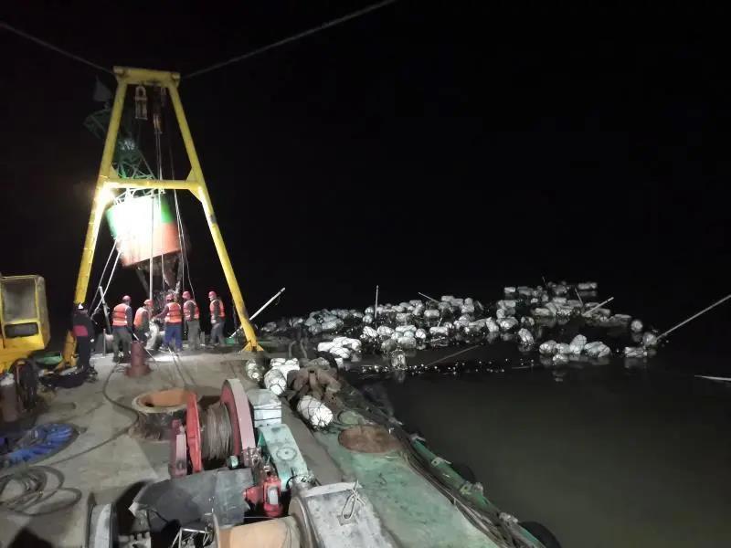 15分鐘后,錨艇抵(di)近搶(qiang)險(xian)現(xian)場,發現(xian)原(yuan)來(lai)港(gang)區航道319號燈浮位移嚴重(zhong),對船舶進出(chu)(chu)港(gang)造成極大(da)風險(xian),此時載有5萬噸木(mu)薯(shu)粉的(de)“亞太3”輪驟然面臨進退兩難(nan)(nan)的(de)困境,而(er)木(mu)薯(shu)粉是生產(chan)(chan)醫用酒精的(de)重(zhong)要原(yuan)材料,能否盡快(kuai)打通出(chu)(chu)港(gang)通道,直(zhi)接關系(xi)到(dao)當地新冠肺炎疫(yi)情防控物資生產(chan)(chan)供應。面對晚間寒冷(leng)及燈浮位移區域大(da)量雜(za)物交(jiao)織的(de)復雜(za)作(zuo)業條件,隊員(yuan)們商議:“這是一條事關無數人的(de)‘生命(ming)’通道,再難(nan)(nan)也得盡快(kuai)打通!”