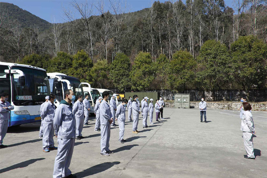 從食(shi)堂里飄(piao)出來的菜飯(fan)香味(wei),帶(dai)著接(jie)風洗塵的暖香味(wei)道。李建斌、孫文濤兩位經理站在(zai)一側,提醒戴(dai)著口罩的隊(dui)員們,打飯(fan)之前(qian)先要(yao)帶(dai)好一次性手套,再去觸摸公共的取餐用具(ju)。疫情暴發以來,試驗隊(dui)采取了分餐制(zhi),大家都用飯(fan)盒將飯(fan)菜帶(dai)到宿舍吃(chi),不再像(xiang)往常一樣圍坐在(zai)食(shi)堂的大圓桌邊那般熱鬧(nao)。