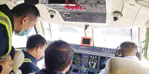 3月13日一早(zao),團隊成(cheng)員只休息(xi)了半天,就投入到了工作(zuo)中,大家團結協作(zuo),將AG600飛機(ji)周(zhou)邊(bian)的(de)(de)衛(wei)生環境進行了全面的(de)(de)清(qing)理消毒(du)。隨后(hou)幾日,他(ta)們不分部門、不分專業,又先后(hou)完(wan)成(cheng)了機(ji)械(xie)系統和(he)航電系統的(de)(de)定期維護和(he)檢(jian)查,動力系統滑油散(san)熱(re)器(qi)和(he)發動機(ji)引起(qi)導管的(de)(de)更換,動力裝(zhuang)置啟封(feng)前的(de)(de)相關準備和(he)檢(jian)查等(deng)工作(zuo)。