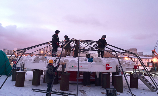 焊(han)接(jie)工(gong)作(zuo)(zuo)必須在(zai)0攝氏度以上才能進(jin)行(xing),而莫斯科天(tian)氣極寒(han)。項目團隊因地制(zhi)宜,對刀(dao)(dao)盤、盾(dun)(dun)構(gou)搭設(she)保溫(wen)棚,對焊(han)接(jie)面及(ji)時(shi)覆蓋保溫(wen)棉進(jin)行(xing)保溫(wen),對已完成(cheng)的(de)每層焊(han)縫進(jin)行(xing)著色探傷試驗……盾(dun)(dun)構(gou)盾(dun)(dun)尾、刀(dao)(dao)盤焊(han)接(jie)工(gong)作(zuo)(zuo)終于按(an)期完成(cheng),為4月底盾(dun)(dun)構(gou)始發創(chuang)造了條件。
