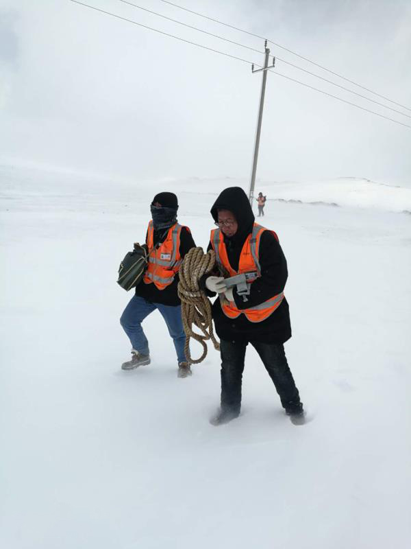 雪(xue)還在(zai)繼續下著(zhu),風(feng)也更急了。凌晨3點多,白塔子工區(qu)搶修隊員到(dao)達(da)天河梁,這里的積雪(xue)比想象中的要厚很(hen)多,車(che)輛(liang)根本無法正常通過。王永杰說(shuo):“咱們務必在(zai)最短時(shi)間內查出故障(zhang),沒有車(che),扛(kang)也得把設備扛(kang)進去!”9級大風(feng)夾雜著(zhu)雪(xue)花,吹(chui)得隊員們睜不開眼(yan)睛(jing)。為(wei)了在(zai)恢復供(gong)電上贏得寶貴(gui)時(shi)間,又(you)寒又(you)饑、疲(pi)憊不堪的他們,渴(ke)了喝一口帶冰碴的礦泉(quan)水,餓了嚼上一口方便(bian)面,接(jie)著(zhu)趕赴下一個地點排障(zhang)。