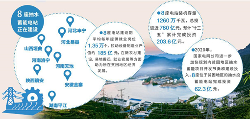 除了豐寧抽水蓄(xu)能電(dian)(dian)站(zhan),國(guo)家電(dian)(dian)網有(you)限公司還(huan)有(you)7座抽水蓄(xu)能電(dian)(dian)站(zhan)正在建設(she)(she),分別(bie)位(wei)(wei)于(yu)安徽金寨(zhai)、河南洛寧、湖南平(ping)江、陜(shan)西鎮安、河南天池、河北易縣、山西垣曲(qu)等(deng)7個(ge)國(guo)家級(ji)和省級(ji)貧(pin)困縣。8座電(dian)(dian)站(zhan)裝(zhuang)機容量(liang)共計1260萬千(qian)瓦,總投資近760億元(yuan)。這些電(dian)(dian)站(zhan)建設(she)(she)期平(ping)均每(mei)年提供就業崗位(wei)(wei)1.35萬個(ge),拉動設(she)(she)備制造業產值約185億元(yuan),在新農村建設(she)(she)、易地(di)(di)搬(ban)遷(qian)、對外(wai)交通(tong)、生態環境(jing)、就業安居等(deng)方面(mian)助力(li)所在貧(pin)困地(di)(di)區經(jing)濟發展。