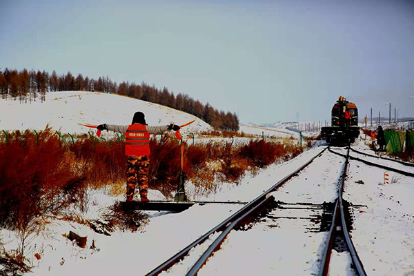 當天(tian)下午(wu)3點(dian)30分,鵝毛大雪鋪(pu)天(tian)蓋地(di)越下越急(ji),機運(yun)(yun)隊(dui)隊(dui)長劉洋接到值(zhi)班員葛亞偉的(de)求助電(dian)話后,立(li)即召集在駐地(di)休(xiu)息的(de)隊(dui)員迅速上車趕往鋪(pu)軌基地(di),同時用對講機發(fa)出指令:“我(wo)們根據行車計劃(hua)去各站點(dian)逐個清理(li),鋪(pu)軌任務就剩(sheng)最后幾公(gong)里了,鋼軌運(yun)(yun)輸不能(neng)中斷,說啥也要保障(zhang)咱們這條鋼鐵運(yun)(yun)輸線的(de)暢通!”