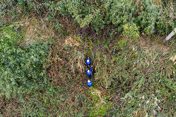 到了(le)目的(de)(de)地,一行(xing)三人先(xian)趟(tang)過山下的(de)(de)一條(tiao)河,沒走幾步(bu),群山便(bian)將(jiang)他們“淹沒”。山上(shang)多是密不透風的(de)(de)茂林野竹,他們先(xian)用鋒利的(de)(de)劈(pi)刀開路。因山勢太陡(dou),再加地面潮濕,稍(shao)不小心(xin)就會滑倒(dao),有時還會被帶刺的(de)(de)荊棘扎傷(shang)。下山時,為了(le)節省力氣,他們會像(xiang)滑滑梯一樣直接(jie)滑下去(qu)……