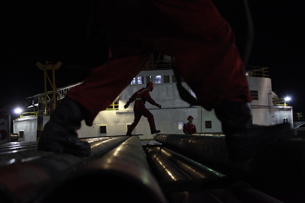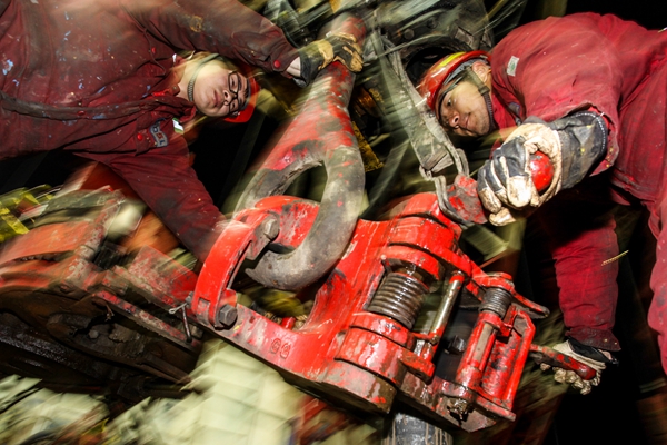 11月(yue)25日,大(da)風以每(mei)秒20.4米的(de)(de)速(su)度橫掃海(hai)(hai)上“不(bu)(bu)夜城(cheng)”,林立的(de)(de)鉆桿(gan)嘎吱作(zuo)響(xiang)。宋衛民像猴子一樣,嗖嗖地爬到高聳(song)的(de)(de)井(jing)(jing)架上,身上紅(hong)色(se)工裝獵獵如旗。他(ta)是(shi)中(zhong)國海(hai)(hai)油(you)“南(nan)海(hai)(hai)一號”鉆井(jing)(jing)平臺的(de)(de)井(jing)(jing)架工。鉆井(jing)(jing)工序(xu)已到起(qi)鉆階段,正(zheng)是(shi)他(ta)“大(da)展神威”之際(ji)。只見他(ta)手(shou)舞棕繩,一甩(shuai)一拉之間(jian),一根根9.5米長的(de)(de)鉆具便被“收服”至指定位置。三(san)小時后,他(ta)爬下(xia)來的(de)(de)畫面(mian),明(ming)顯變成了(le)慢(man)動作(zuo)。那(nei)張(zhang)快要凍(dong)出淚水的(de)(de)紅(hong)臉(lian)映入眼(yan)簾,手(shou)扶(fu)剎把的(de)(de)司鉆李軍義(yi)不(bu)(bu)由一嘆。