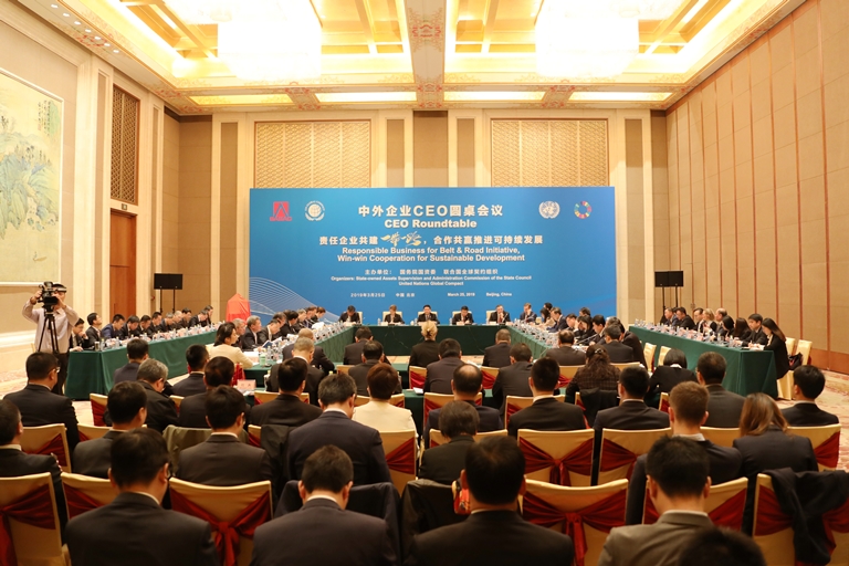 3月(yue)25日,國(guo)(guo)務院國(guo)(guo)資(zi)委和聯合國(guo)(guo)全(quan)球契(qi)(qi)約組(zu)(zu)織(zhi)共同舉辦了中外企業(ye)CEO圓桌會(hui)(hui)議,以“責任企業(ye)共建‘一帶一路’、合作共贏推進可持續發(fa)展”為主題,交流研(yan)討,共倡(chang)履行(xing)社會(hui)(hui)責任,共謀可持續發(fa)展。國(guo)(guo)務院國(guo)(guo)資(zi)委主任肖(xiao)亞(ya)慶、聯合國(guo)(guo)全(quan)球契(qi)(qi)約組(zu)(zu)織(zhi)總干事金麗莎出席會(hui)(hui)議并致辭(ci)。國(guo)(guo)務院國(guo)(guo)資(zi)委副主任任洪(hong)斌主持會(hui)(hui)議。40多位(wei)中外企業(ye)CEO和部分國(guo)(guo)際(ji)組(zu)(zu)織(zhi)駐華機(ji)構(gou)代表參(can)加會(hui)(hui)議。