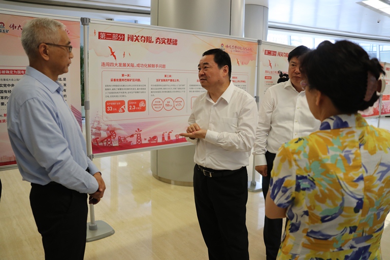 郝鵬深入中(zhong)國(guo)五(wu)礦有色院中(zhong)國(guo)礦業(ye)信(xin)息(xi)化(hua)協同創(chuang)新(xin)中(zhong)心(xin),與有關(guan)院士、專(zhuan)家探討礦產(chan)資源領域科技(ji)創(chuang)新(xin)問題(ti),同青年(nian)科研(yan)人員親切交(jiao)流;到中(zhong)國(guo)五(wu)礦總部參觀了企業(ye)“偉大思想引領滿帆啟航”——中(zhong)國(guo)五(wu)礦、中(zhong)冶集(ji)團(tuan)重(zhong)組(zu)三周(zhou)年(nian)成就展,對企業(ye)以高(gao)質量(liang)黨建引領高(gao)質量(liang)發(fa)展,“互補式重(zhong)組(zu)”實現三年(nian)兩翻(fan)番,推進產(chan)業(ye)鏈持續(xu)健康發(fa)展的顯著成績(ji)給予充分肯(ken)定。郝鵬強(qiang)調,要進一步(bu)解放(fang)思想,深化(hua)改革,做(zuo)強(qiang)做(zuo)優主業(ye)實業(ye),瞄準銅、鋅、鎳、鉻、稀土等國(guo)家戰略(lve)性資源,超前謀劃布局,打造完整產(chan)業(ye)鏈,在維護我國(guo)資源安全上發(fa)揮應有作用(yong)。要培養、用(yong)好優秀人才,盡快(kuai)攻(gong)克一批(pi)制約行業(ye)發(fa)展的關(guan)鍵核(he)心(xin)技(ji)術。