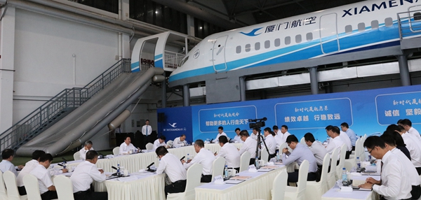 廈(sha)門航(hang)空(kong)是(shi)習(xi)(xi)(xi)近(jin)平總書(shu)記(ji)在福建工作(zuo)期間親自推(tui)(tui)動(dong)(dong)組建的(de)國內第一(yi)(yi)家中(zhong)央企(qi)(qi)業(ye)(ye)(ye)(ye)(ye)與地方(fang)國有(you)(you)企(qi)(qi)業(ye)(ye)(ye)(ye)(ye)合資經營的(de)航(hang)空(kong)公司,35年來(lai)創(chuang)造了輝煌業(ye)(ye)(ye)(ye)(ye)績(ji),成為國有(you)(you)企(qi)(qi)業(ye)(ye)(ye)(ye)(ye)改(gai)(gai)革(ge)(ge)發(fa)(fa)(fa)(fa)展(zhan)(zhan)(zhan)(zhan)的(de)典(dian)范(fan)。郝鵬來(lai)到廈(sha)航(hang),參(can)觀了企(qi)(qi)業(ye)(ye)(ye)(ye)(ye)“初心之路”展(zhan)(zhan)(zhan)(zhan),認真(zhen)聽取了企(qi)(qi)業(ye)(ye)(ye)(ye)(ye)改(gai)(gai)革(ge)(ge)發(fa)(fa)(fa)(fa)展(zhan)(zhan)(zhan)(zhan)情(qing)況介紹。郝鵬指出,廈(sha)航(hang)的(de)成長歷(li)程是(shi)中(zhong)國民航(hang)業(ye)(ye)(ye)(ye)(ye)發(fa)(fa)(fa)(fa)展(zhan)(zhan)(zhan)(zhan)的(de)縮影,也(ye)是(shi)國有(you)(you)企(qi)(qi)業(ye)(ye)(ye)(ye)(ye)做(zuo)強做(zuo)優發(fa)(fa)(fa)(fa)展(zhan)(zhan)(zhan)(zhan)壯大的(de)縮影,新(xin)(xin)時代(dai)廈(sha)航(hang)這只“白(bai)鷺”一(yi)(yi)定會飛(fei)得(de)更(geng)(geng)快(kuai)更(geng)(geng)高(gao)。要以(yi)主題教育為契(qi)機,結(jie)合企(qi)(qi)業(ye)(ye)(ye)(ye)(ye)多年來(lai)沿著習(xi)(xi)(xi)近(jin)平總書(shu)記(ji)指引(yin)方(fang)向深(shen)(shen)化改(gai)(gai)革(ge)(ge)、加(jia)(jia)快(kuai)發(fa)(fa)(fa)(fa)展(zhan)(zhan)(zhan)(zhan)的(de)實踐(jian)探索,推(tui)(tui)動(dong)(dong)學習(xi)(xi)(xi)貫徹習(xi)(xi)(xi)近(jin)平新(xin)(xin)時代(dai)中(zhong)國特(te)色社會主義思想(xiang)走(zou)深(shen)(shen)走(zou)實,不斷強化干(gan)事創(chuang)業(ye)(ye)(ye)(ye)(ye)擔當,加(jia)(jia)快(kuai)破解改(gai)(gai)革(ge)(ge)發(fa)(fa)(fa)(fa)展(zhan)(zhan)(zhan)(zhan)難題;以(yi)安全(quan)第一(yi)(yi)為準繩,堅(jian)決守住航(hang)空(kong)運輸企(qi)(qi)業(ye)(ye)(ye)(ye)(ye)生(sheng)存發(fa)(fa)(fa)(fa)展(zhan)(zhan)(zhan)(zhan)底線;以(yi)爭創(chuang)一(yi)(yi)流(liu)為目標(biao),在戰略引(yin)領、管理提升(sheng)、品牌建設、市(shi)場開(kai)拓(tuo)、風險防控等方(fang)面下更(geng)(geng)大功夫,推(tui)(tui)動(dong)(dong)高(gao)質(zhi)量(liang)發(fa)(fa)(fa)(fa)展(zhan)(zhan)(zhan)(zhan)邁出新(xin)(xin)步伐;以(yi)提高(gao)活力效率為中(zhong)心,秉(bing)承“愛(ai)拼才會贏”精神,持(chi)續(xu)深(shen)(shen)化改(gai)(gai)革(ge)(ge)創(chuang)新(xin)(xin),為企(qi)(qi)業(ye)(ye)(ye)(ye)(ye)發(fa)(fa)(fa)(fa)展(zhan)(zhan)(zhan)(zhan)增(zeng)添新(xin)(xin)活力;推(tui)(tui)動(dong)(dong)黨(dang)的(de)建設與生(sheng)產經營深(shen)(shen)度融合,以(yi)高(gao)質(zhi)量(liang)黨(dang)建引(yin)領高(gao)質(zhi)量(liang)發(fa)(fa)(fa)(fa)展(zhan)(zhan)(zhan)(zhan)。