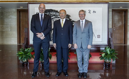 7月6日, 閻曉峰(feng)秘(mi)書長在委內會見了澳大利亞西澳州政(zheng)府發展部(bu)(bu)(bu)、財政(zheng)部(bu)(bu)(bu)、創新部(bu)(bu)(bu)長邁米安先生(sheng)、西澳州農業與食品部(bu)(bu)(bu)、交通部(bu)(bu)(bu)長丁(ding)那德先生(sheng)。
