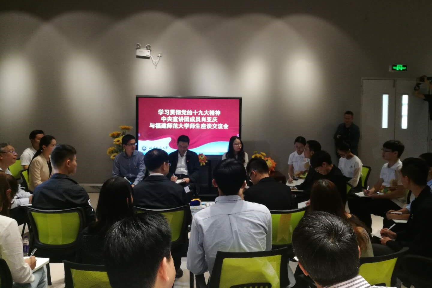 11月8日—11日,中央宣(xuan)(xuan)講(jiang)團(tuan)成員(yuan)、國資委主任(ren)肖亞慶一(yi)行(xing)奔赴福建(jian),將黨(dang)的(de)(de)十九(jiu)(jiu)(jiu)大(da)精(jing)神(shen)帶到企(qi)業、農(nong)村、校園(yuan)、社區,全面系統(tong)(tong)地(di)(di)解讀黨(dang)的(de)(de)十九(jiu)(jiu)(jiu)大(da)精(jing)神(shen),深入淺(qian)出(chu)地(di)(di)講(jiang)解黨(dang)的(de)(de)十九(jiu)(jiu)(jiu)大(da)提出(chu)的(de)(de)新思(si)(si)想(xiang)、新論(lun)斷、新要求、新任(ren)務。基層干部群(qun)眾一(yi)致表示,要以(yi)此(ci)次中央宣(xuan)(xuan)講(jiang)團(tuan)來(lai)閩宣(xuan)(xuan)講(jiang)為契機,進一(yi)步統(tong)(tong)一(yi)思(si)(si)想(xiang)和(he)行(xing)動,學懂弄通做實(shi)(shi)十九(jiu)(jiu)(jiu)大(da)精(jing)神(shen),緊密結合自身工作(zuo)實(shi)(shi)際,把學習宣(xuan)(xuan)傳貫(guan)徹十九(jiu)(jiu)(jiu)大(da)精(jing)神(shen)引向深入。