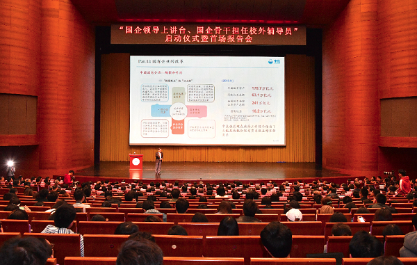 4月2日,“國企(qi)(qi)領導上講臺、國企(qi)(qi)骨干擔任校外(wai)輔導員”啟動儀式暨首場報告會在清(qing)華大學(xue)新(xin)清(qing)華學(xue)堂(tang)舉行。