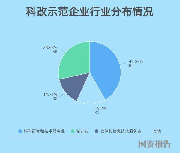 從行(xing)(xing)業(ye)(ye)分(fen)布(bu)來(lai)看,204戶(hu)“科(ke)改(gai)示范企業(ye)(ye)”企業(ye)(ye)分(fen)布(bu)在12個(ge)門類行(xing)(xing)業(ye)(ye)、40個(ge)大(da)類行(xing)(xing)業(ye)(ye),主要集中分(fen)布(bu)在科(ke)學研(yan)究和(he)技(ji)(ji)術(shu)服(fu)務業(ye)(ye)(85戶(hu))、制造業(ye)(ye)(58戶(hu))和(he)軟件和(he)信息技(ji)(ji)術(shu)服(fu)務業(ye)(ye)(30戶(hu))三個(ge)門類行(xing)(xing)業(ye)(ye),占204家的84.8%。
