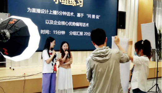 廣交會前夕,江蘇蘇美達集團公司兩位女員工正在進行直播訓練,在開播前反復打磨根據企業產品優勢編寫的直播臺詞