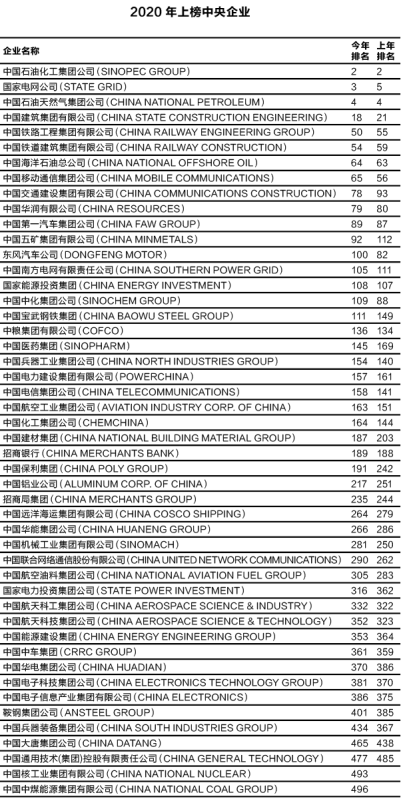 值得注意的(de)(de)是(shi),一些上(shang)榜的(de)(de)中(zhong)央(yang)企(qi)(qi)業呈現(xian)出(chu)了穩(wen)(wen)健發展的(de)(de)特點,排名(ming)(ming)穩(wen)(wen)步增長(chang),繼續名(ming)(ming)列前(qian)茅。中(zhong)國石化依然穩(wen)(wen)居世界(jie)第(di)二(er);中(zhong)國石油(you)依然為世界(jie)第(di)四(si);國家電(dian)網從(cong)第(di)五名(ming)(ming)上(shang)升(sheng)到第(di)三名(ming)(ming);中(zhong)建(jian)集團排名(ming)(ming)從(cong)上(shang)年的(de)(de)21位提升(sheng)至(zhi)18位。這些央(yang)企(qi)(qi)體量(liang)比(bi)較大,對于所處行業的(de)(de)影(ying)響(xiang)力、控制力也比(bi)較強,他們生產經營的(de)(de)穩(wen)(wen)定(ding)增長(chang),體現(xian)了央(yang)企(qi)(qi)在扎實做好“六(liu)(liu)穩(wen)(wen)六(liu)(liu)保(bao)”方面的(de)(de)能力和貢獻。中(zhong)央(yang)企(qi)(qi)業高質(zhi)量(liang)發展態勢愈加明顯。
