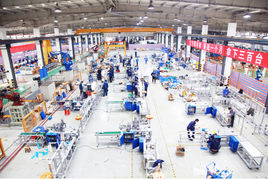 抗疫期間,中國恒天、國機智能等單位集中組織攻關,共同鑄就國機集團科技創新強大力量。圖為國機集團下屬國機智能第100臺口罩機在廣州下線。