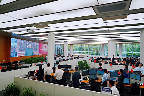 東(dong)航(hang)位于(yu)上海(hai)總(zong)部(bu)的運控中心干部(bu)員(yuan)工收看國(guo)慶直(zhi)播(bo)