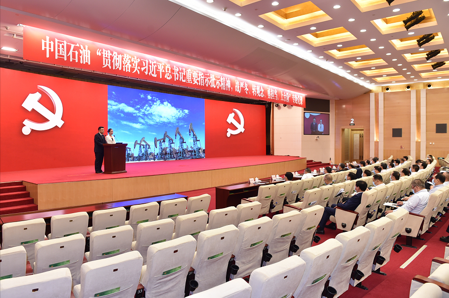 “石油工人心向黨”“我為祖國獻石油”……在建黨99周年之際,中國石油舉辦“貫徹落實習近平總書記重要指示(shi)批示(shi)精(jing)神(shen),戰嚴冬、轉觀念(nian)、勇擔當、上(shang)臺(tai)階”專(zhuan)題黨課(ke),激勵黨員(yuan)(yuan)干部職工更加奮發(fa)有為(wei)地推動集團公(gong)司高質量發(fa)展,為(wei)保障國(guo)家能源(yuan)安全、決戰決勝全面建成小康(kang)社會貢獻石(shi)(shi)油(you)(you)力量。專(zhuan)題黨課(ke)還專(zhuan)門(men)安排“石(shi)(shi)油(you)(you)魂(hun)”宣講總隊做了(le)(le)“石(shi)(shi)油(you)(you)魂(hun)——石(shi)(shi)油(you)(you)精(jing)神(shen)和大慶(qing)(qing)精(jing)神(shen)鐵(tie)人(ren)精(jing)神(shen)”宣講報告,所(suo)屬大慶(qing)(qing)油(you)(you)田、湖北銷售、中油(you)(you)國(guo)際(ji)等(deng)7家單(dan)位黨委做了(le)(le)交流發(fa)言。這(zhe)場主題鮮明、環(huan)節(jie)豐富、充滿著“黨味”“油(you)(you)味”的(de)(de)黨課(ke),給予了(le)(le)石(shi)(shi)油(you)(you)員(yuan)(yuan)工強大的(de)(de)精(jing)神(shen)力量。主分(fen)會場的(de)(de)3.5萬人(ren)以及收看直播的(de)(de)黨員(yuan)(yuan)干部職工,接(jie)受(shou)了(le)(le)思(si)想再洗禮(li)。