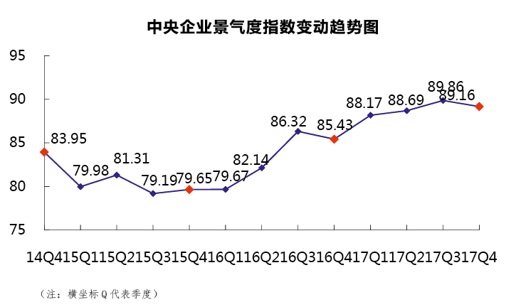 2017年中央企業(ye)景氣度指數(shu)分季度依次為88.17%、88.69%、89.86%和89.16%,實(shi)現高位(wei)平穩運(yun)行。