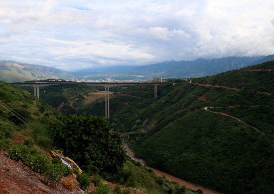 施工方負責人介紹,該橋所在的元江縣地處7度地震烈度區,最大峽谷風速超過40米每秒。高154米的“第一高墩”設計,超過40米每秒的最大風速,對橋墩的穩定性和設備安全是最大的挑戰。經專家論證、方案比選,大橋主墩采用鋼混組合雙柱式剛架墩,由兩個鋼筋混凝土薄壁空心墩間通過交叉式鋼橫聯結構組成,有效減輕橋墩自重,解決地質條件復雜的問題,這一方法在國內也是首創。