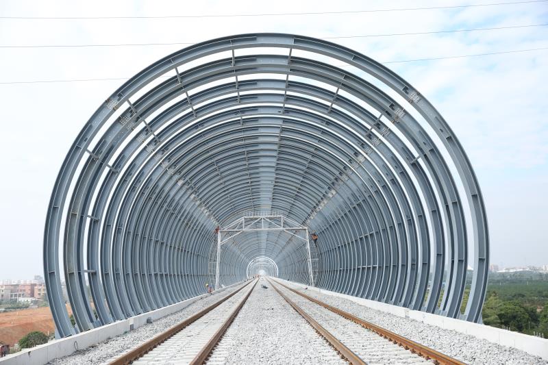 中鐵(tie)四(si)局在橋(qiao)梁(liang)下部結(jie)構施(shi)工(gong)、加工(gong)精度控(kong)制、鋼結(jie)構限位板尺(chi)寸及金屬吸聲板安裝方式(shi)等(deng)方面(mian)進行了技(ji)術革(ge)新,保障了全球首例(li)全封閉聲屏障順(shun)利(li)完(wan)工(gong)。