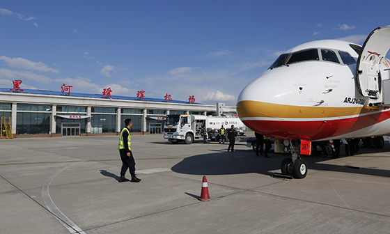 ARJ21飛機降落在黑河璦琿機場