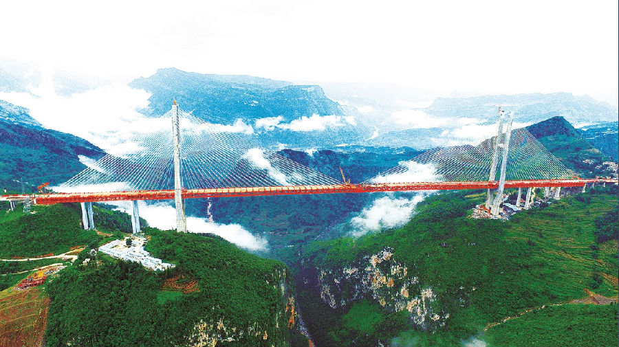 北盤(pan)(pan)江第(di)一(yi)橋(qiao)(qiao)(qiao)位(wei)于云(yun)(yun)南(nan)省(sheng)和(he)貴(gui)州省(sheng)交(jiao)界(jie)處(chu),跨越北盤(pan)(pan)江大峽谷(gu),是(shi)杭瑞(杭州至瑞麗(li))高(gao)速(su)(su)畢(bi)節至都格段的重(zhong)點控制性工(gong)程。大橋(qiao)(qiao)(qiao)全長1341.4米,主(zhu)橋(qiao)(qiao)(qiao)為跨徑720米的鋼桁梁斜拉橋(qiao)(qiao)(qiao),在同類型橋(qiao)(qiao)(qiao)梁中位(wei)居世界(jie)第(di)二。該橋(qiao)(qiao)(qiao)橋(qiao)(qiao)(qiao)面至谷(gu)底高(gao)差達565米,相(xiang)當于200層(ceng)樓高(gao),是(shi)目前世界(jie)第(di)一(yi)高(gao)橋(qiao)(qiao)(qiao)。二航(hang)局(ju)負責大橋(qiao)(qiao)(qiao)貴(gui)州岸施(shi)工(gong),項(xiang)目于2012年開工(gong)建設,2016年12月29日建成(cheng)通(tong)車(che)。大橋(qiao)(qiao)(qiao)通(tong)車(che)后,云(yun)(yun)貴(gui)兩省(sheng)又新增一(yi)條高(gao)速(su)(su)通(tong)道,從云(yun)(yun)南(nan)宣威到貴(gui)州六盤(pan)(pan)水車(che)程由過去5小(xiao)時縮短(duan)至1小(xiao)時。