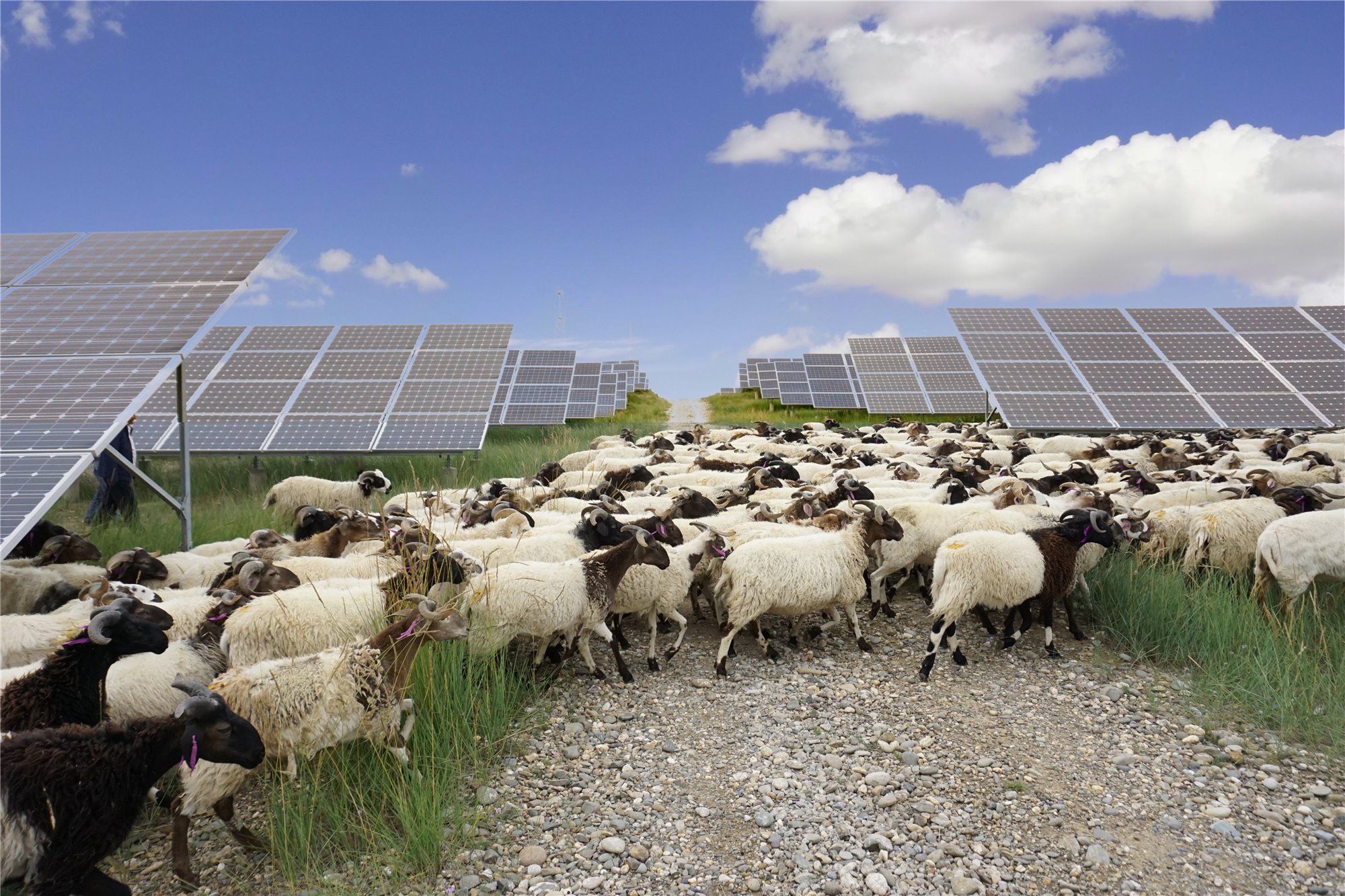國家電投青海海南州共和光伏產業園區內的“光伏羊”