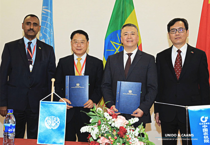 開幕式后,聯合國工業(ye)發(fa)展組(zu)織和(he)(he)中(zhong)國(guo)農(nong)(nong)機(ji)院簽署(shu)了合作備忘錄,未(wei)來雙方將(jiang)(jiang)加強在(zai)農(nong)(nong)業領域的(de)(de)(de)(de)合作,充分發(fa)揮(hui)中(zhong)國(guo)農(nong)(nong)機(ji)院在(zai)農(nong)(nong)業領域的(de)(de)(de)(de)技術(shu)優勢,共同推動包(bao)括非洲國(guo)家(jia)在(zai)內的(de)(de)(de)(de)發(fa)展中(zhong)國(guo)家(jia)的(de)(de)(de)(de)農(nong)(nong)業機(ji)械化技術(shu)提升和(he)(he)農(nong)(nong)業技術(shu)的(de)(de)(de)(de)可(ke)(ke)持(chi)續發(fa)展。雙方將(jiang)(jiang)緊密合作,為減(jian)少全球(qiu)發(fa)展的(de)(de)(de)(de)不均衡性和(he)(he)消除貧(pin)困(kun),實現包(bao)容(rong)性和(he)(he)可(ke)(ke)持(chi)續發(fa)展的(de)(de)(de)(de)工發(fa)組(zu)織總體目標而共同努力。