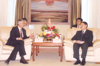 5月24日下午,國資委主任、黨委書記李榮融在國資委會見了德國巴斯夫公司執行董事局主席賀斌杰。賀斌杰向李榮融簡要介紹了巴斯夫公司目前在中國投資項目的進展情況,特別是和中央企業的合資合作情況。李榮融向賀斌杰先生介紹了國資委成立兩年以來所做的主要工作和基本工作思路。國資委產權管理局、規劃發展局、企業改革局、外事局的有關人員參加了會見。