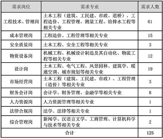 根據(ju)公(gong)司規劃發展需求,現對中國通號建(jian)設(she)集團部(bu)分崗位進行公(gong)開校園招聘,具體招聘崗位及需求如下(xia):