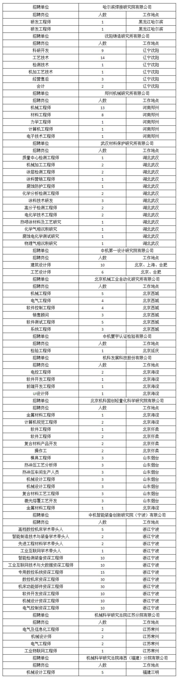 具體見《機械總院集團所屬(shu)單位招聘主要(yao)職(zhi)責與任職(zhi)條件》(附件1)。