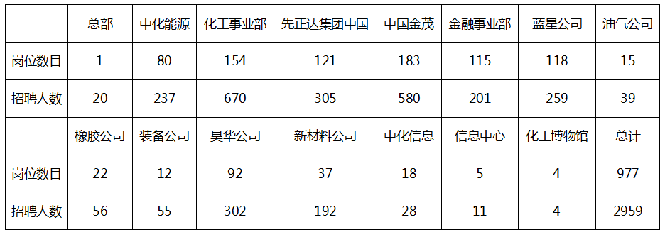 2022年中國中化將(jiang)提供(gong)977個(ge)崗位,招聘(pin)共計2959人。