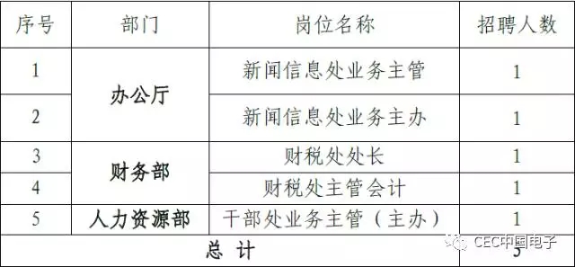 根據(ju)中(zhong)國電子發展需要,擬(ni)面向全社會和集團系統公開招聘總部工作人員。現將有關事項公告如下: