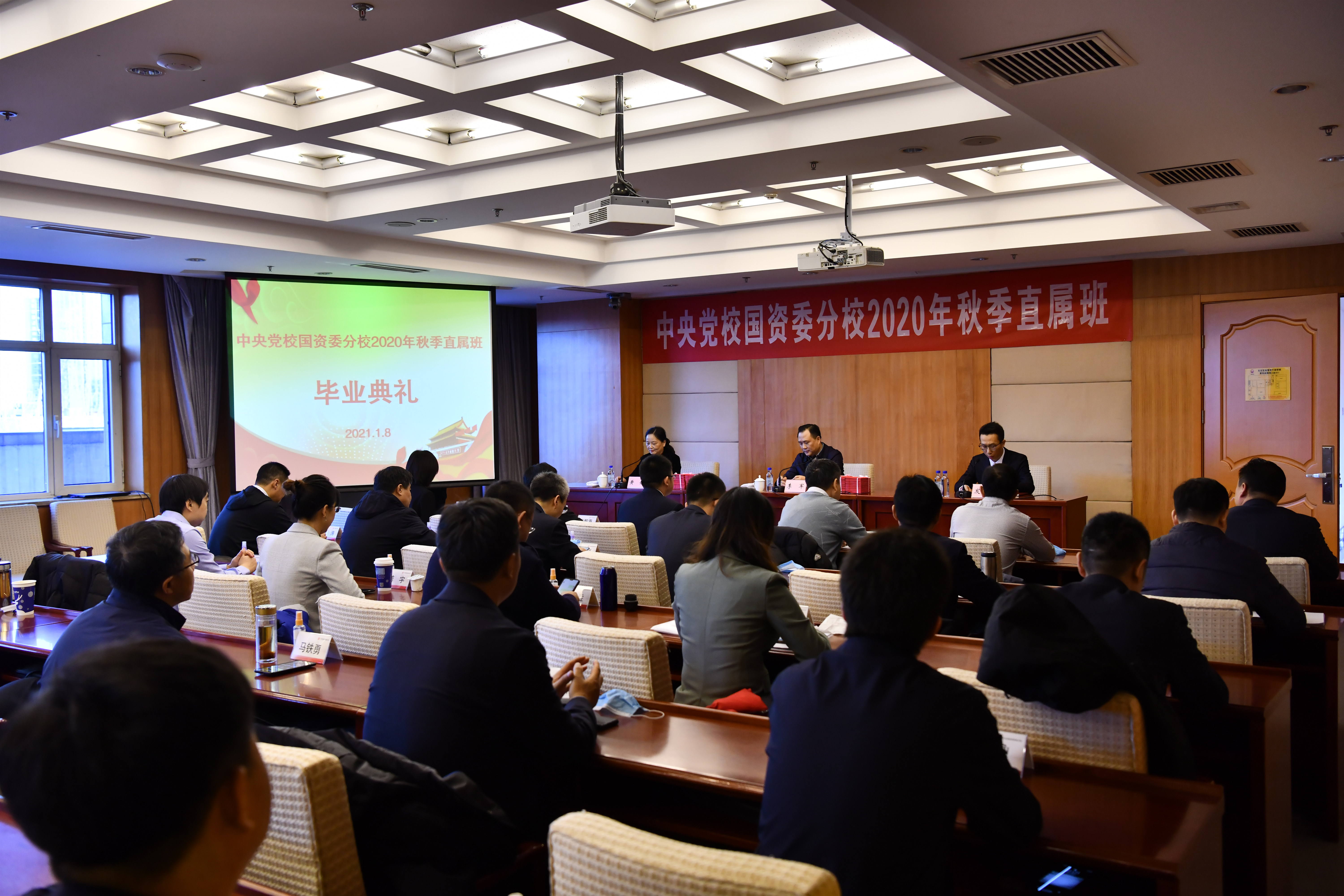 2021年(nian)1月8日上午(wu),中央(yang)黨校(xiao)國資委(wei)分校(xiao)舉(ju)行(xing)2020年(nian)秋季直(zhi)屬班畢業(ye)(ye)典(dian)禮。國資委(wei)干部教(jiao)育培(pei)訓中心主要(yao)負(fu)責(ze)同志出席(xi)并講話。學(xue)員(yuan)(yuan)代(dai)表發言總結了學(xue)習(xi)情況,來自中央(yang)企(qi)業(ye)(ye)和國資委(wei)機關、直(zhi)屬單位(wei)、委(wei)管行(xing)業(ye)(ye)協(xie)會(hui)及管理局系統80名(ming)直(zhi)屬局處級干部進(jin)修班學(xue)員(yuan)(yuan)參加了畢業(ye)(ye)典(dian)禮。25名(ming)學(xue)員(yuan)(yuan)被(bei)評(ping)為優(you)秀(xiu)學(xue)員(yuan)(yuan),17名(ming)學(xue)員(yuan)(yuan)的(de)畢業(ye)(ye)論文(wen)被(bei)評(ping)為優(you)秀(xiu)畢業(ye)(ye)論文(wen)。