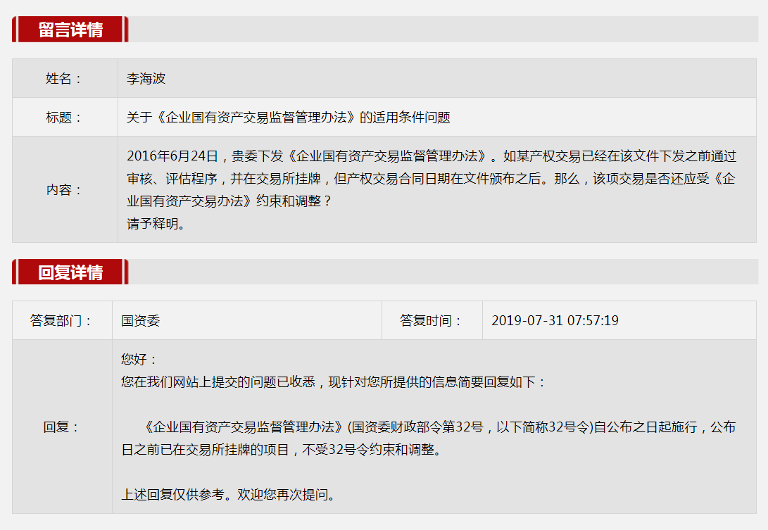 1.關于《企(qi)業國(guo)有(you)資產(chan)交易監督管理辦法》的適用(yong)條(tiao)件問題(ti)