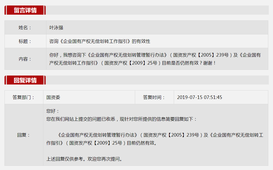 2.關于《企業國有產權無償劃轉工作指引》的有效性